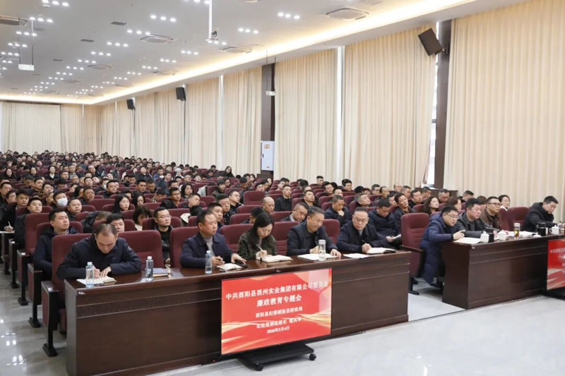 為深入貫徹全面從嚴治黨戰略方針,持續深化黨風廉政建設和反腐敗工作,壓緊壓實管黨治企政治責任,3月4日,酉州實業集團召開2026年黨風廉政建設工作專題會。會議旨在筑牢全員廉潔思想防線,為集團新一年的發展劃定“路線圖”、明確“任務書”。集團黨委副書記、總經理冉景和主持會議,縣紀委監委派駐縣財政局紀檢監察組組長謝其華應邀蒞臨指導。集團全體領導班子、中層干部、全體黨員,子公司副職以上干部,項目建設、財務融資、物資采購、兩違管控、鄉村振興工作隊員等關鍵崗位,桃花源地產公司、新城公司全體干部職工參會。會議分為兩個階段進行,采取“警示+傳達+部署+表態+指導”的五維聯動模式,環環相扣、步步深入,通過全方位的思想洗禮和責任傳導,推動集團2026年黨風廉政建設工作走深走實。